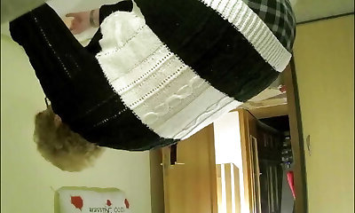 Busty mature milf maid clean in mini dress - Mini Mini-skirt - Plumper SSBBW cleaning lady showcasing big ass close up panties to the side