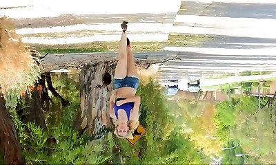 Outdoors video of flexible Reese pleasuring her shaved twat