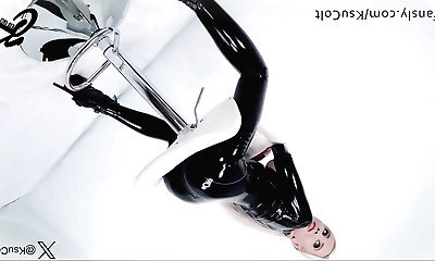 Hotkinkyjo in sexy latex suit fuck her backside with huge dildo from mrhankey, anal fisting & ass inside-out